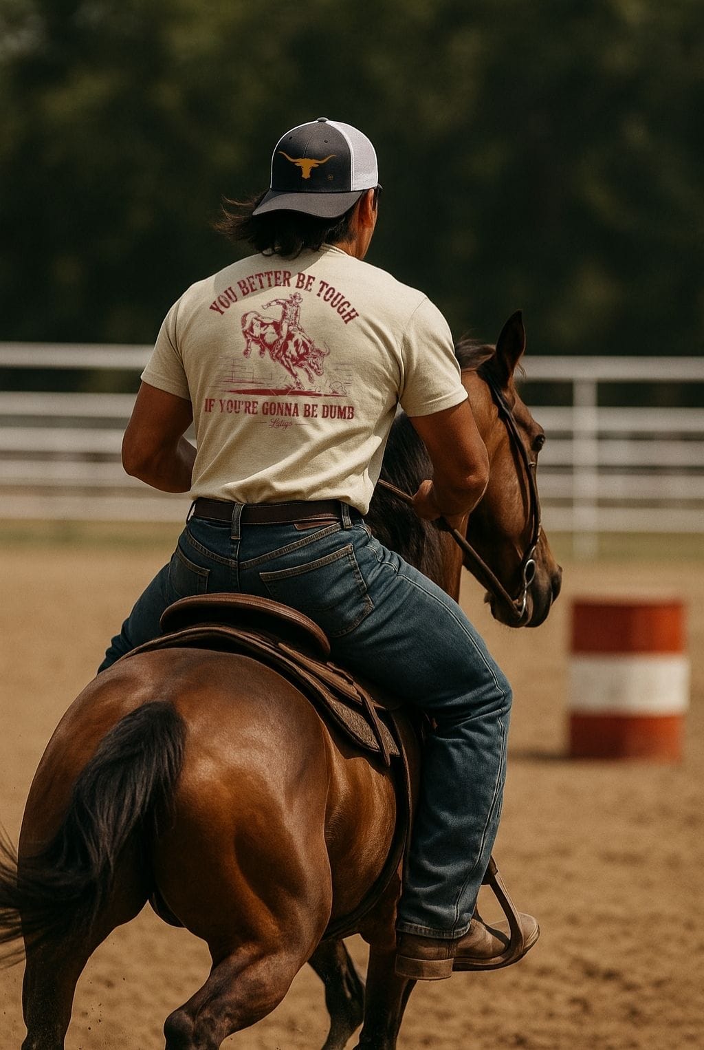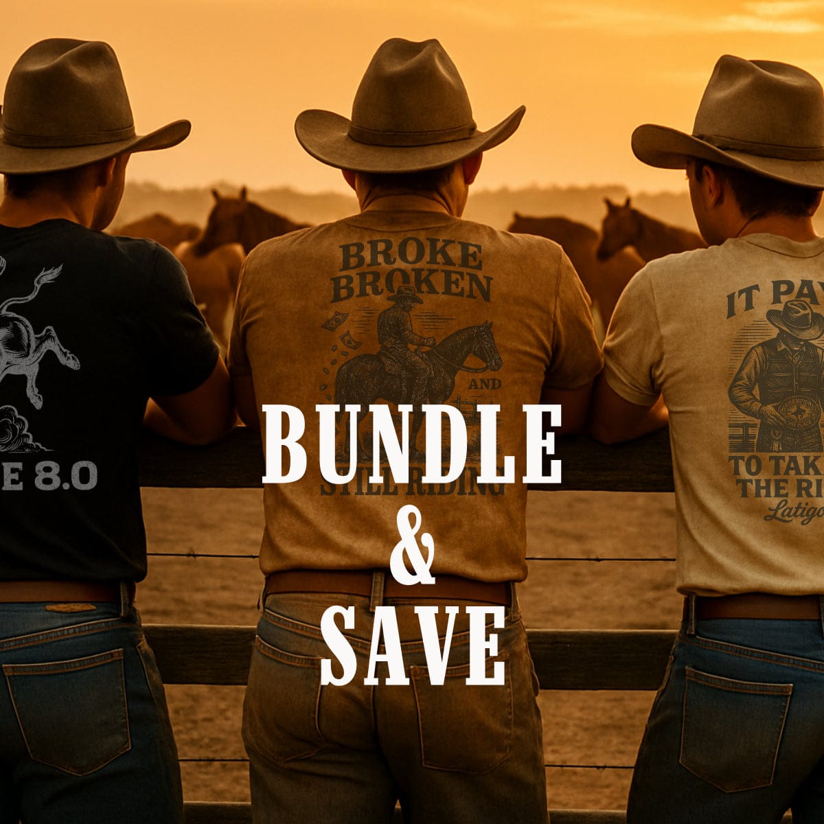 We create authentic designs that honor the real tradition—working cowboys, rodeo athletes, ranch life. Quality tees printed in America by people who actually respect what they're printing.